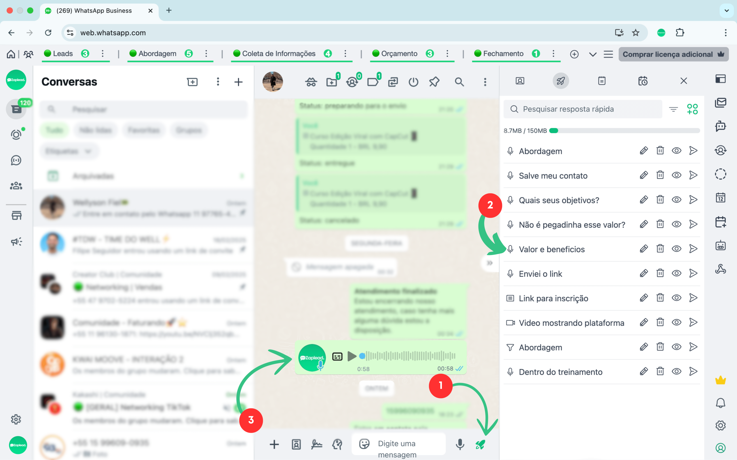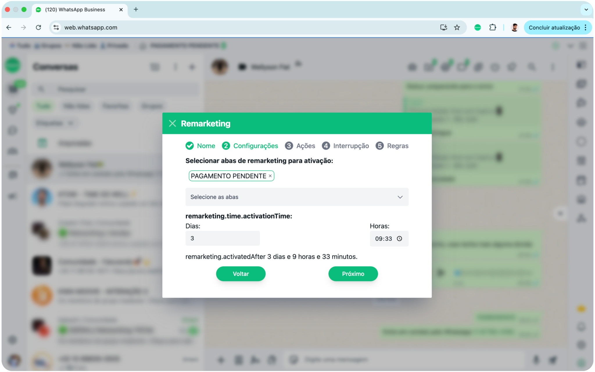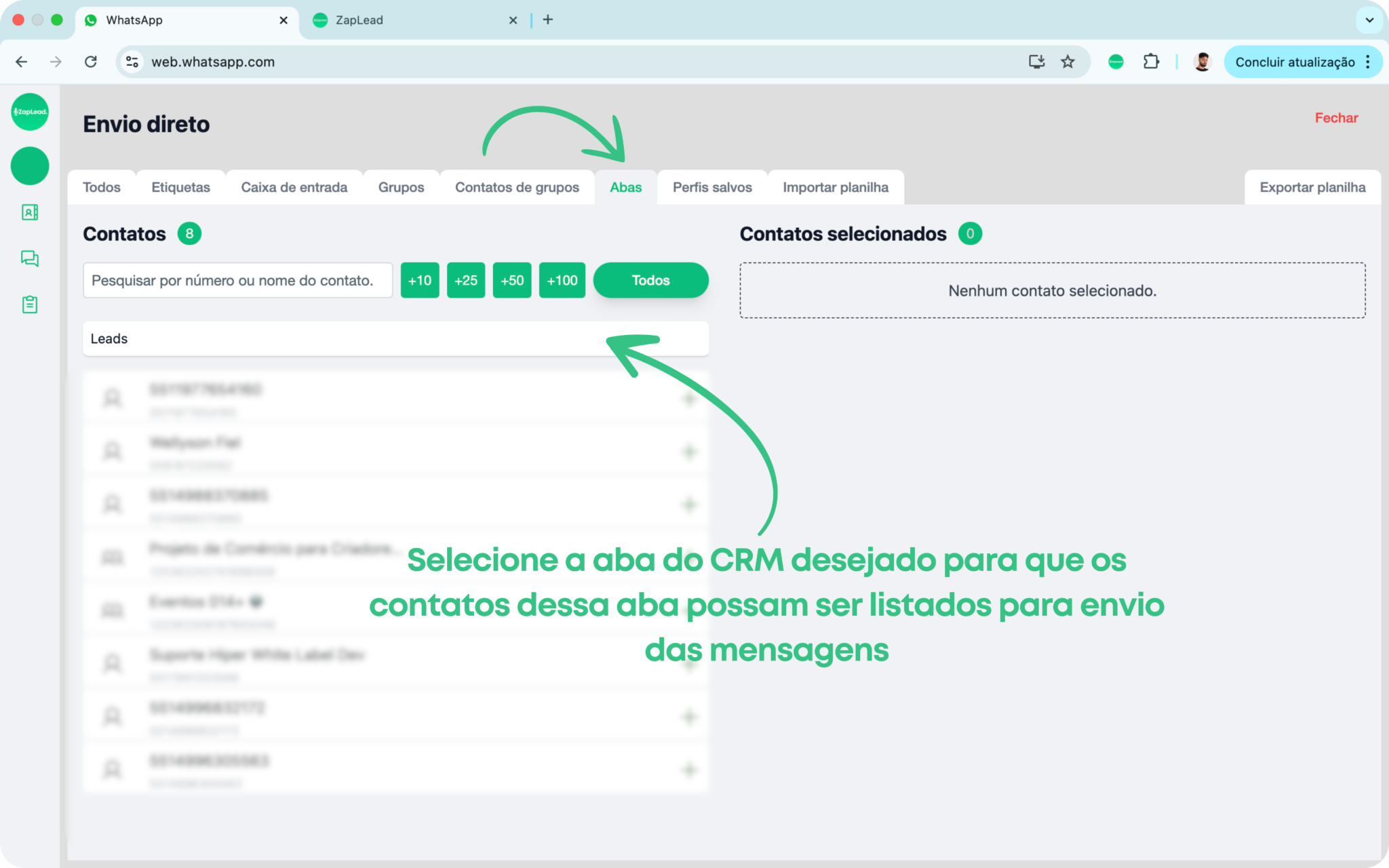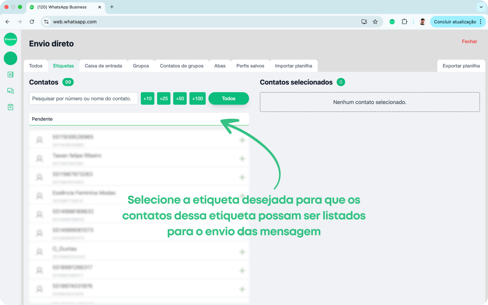 Realizar envios em massa por etiquetas, estágio do CRM ou grupos.