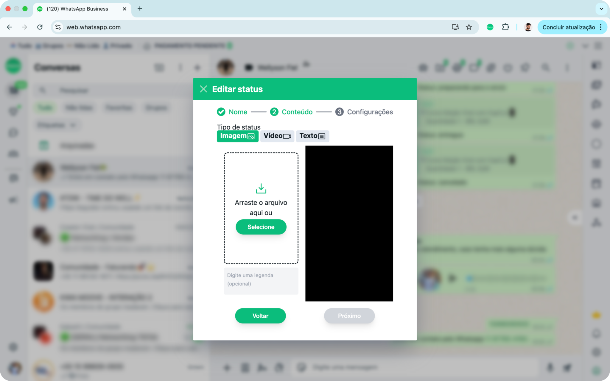 A segurança das conversas é garantida pela criptografia nativa do WhatsApp.