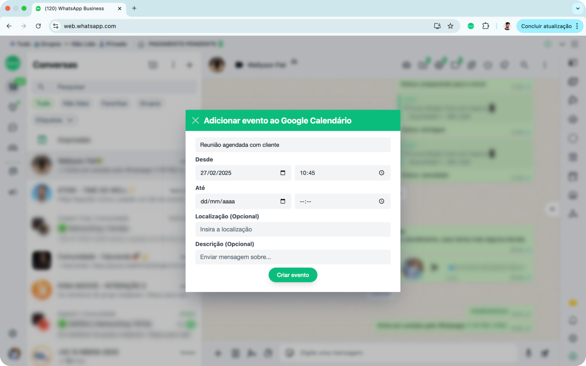 Agendar reuniões direto no Google Agenda, integrando com seus clientes.